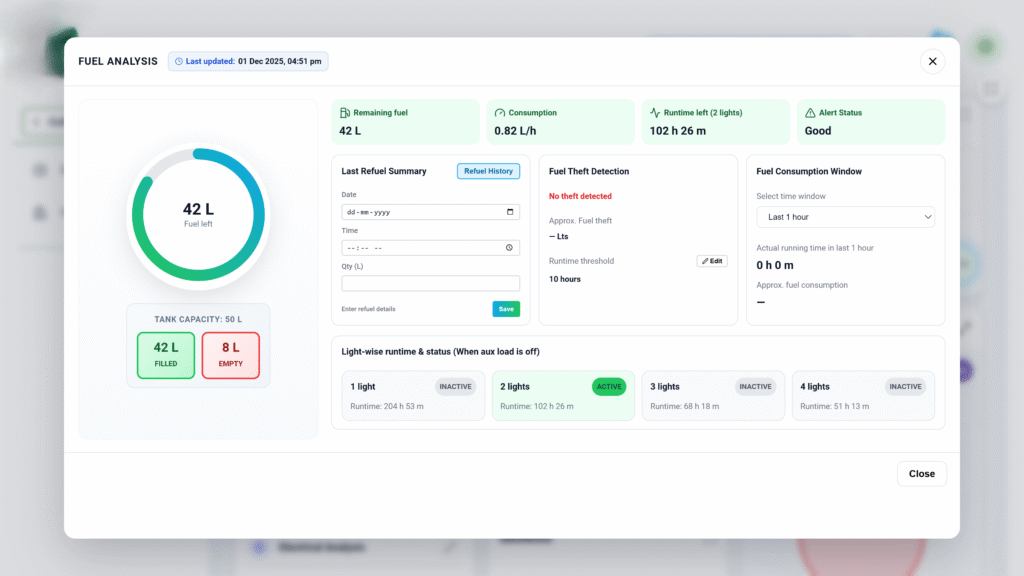 - Prevents diesel losses, which are one of the biggest hidden costs in genset operations.
